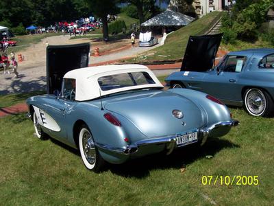 1959 Corvette Convertible Equipped with its Original 283/230hp V8 with Matching Numbers ( Block Casting) and 3 Speed Manual Transmission. Frost Blue with White Coves, and Frost Blue Interior.. Features include Soft top, Original Wonderbar Radio, Package Tray, Courtesy Light, Sunshades, and Proper Stainless Wheel Covers with Proper 6.70-15 Wide Whitewall Tires. Nice body fit and overall detail on a great driving Frost Blue Corvette Roadster. An absolute sweetheart to drive and finished in one of the best color combinations ever, this little roadster also has a ton of integrity! Well sorted out with excellent road manners. Car has an older restoration, approximately 10-15 years ago. I have won many first prizes at car shows, and am told car is a very strong number 2 driver. All parts on car are original, Engine, Transmission, hubcaps, Etc. The car is really beautiful, and if you can see it in person you will understand. I will describe car as much as possible. It is not perfect, has some scratches, some chips and the chrome on car can use a redip if your looking for perfection. Car drives awesome, new brakes, and fluids, car had a major go threw and it drives strong. Car still has original radiator, which is date stamped, t3 headlights, etc. When I tell you it has all of its original parts, im not kidding. Wonderbar radio still works! Sold As is