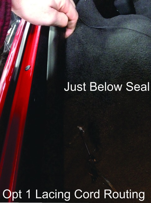 When using option 1 routing you will have to be careful where the cord goes over the seal. You can run it all the to the plastic trim and run it over just make sure its free and you route it correctly away from the trunk rubber stop. Make sure and test first.