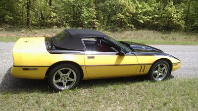 1987 corvette C4, 383 stroker with 150 shot nitrous.eldebrock performance high rise intake, Holley 750 double pumper carb. Custom black on yellow paint.