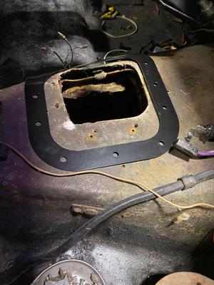 I bought a barn find 1969 corvette. The original owner changed the manual transmission to an automatic. He had the shifter held in with two wood screws. I bought a new retainer plate and seal from pacifica corvette. The original hole is too small. Any suggestions as to how I should mount the shifter plate. I know it needs to be exact, else the console will not fit. Is there any kind on template that I can use?